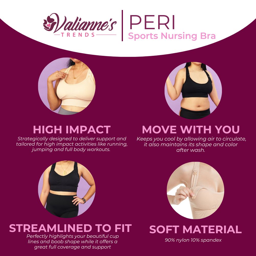 HIGH IMPACT SPORTS BRA:Intense workouts call for extra support. Peri Sports Nursing Bra for Women is strategically designed to deliver support and tailored for high impact activities like running, jumping and full body workouts.